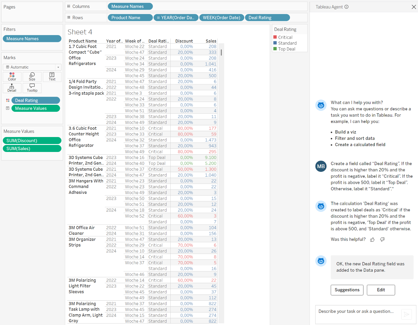 The application of AI functions in the Superstore scenario shows that the Tableau Agent is far more than a technical gadget. These features make it easier and faster for analysts to get started with the tool and enable them to work more efficiently.