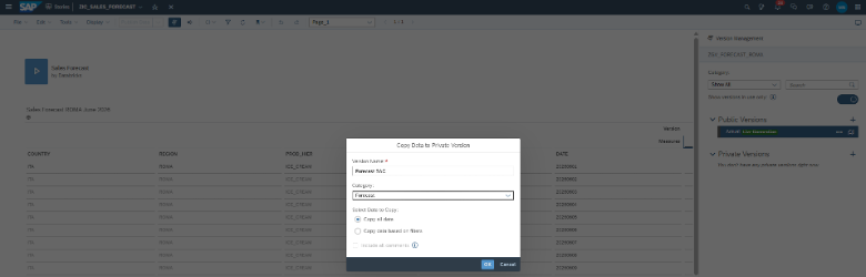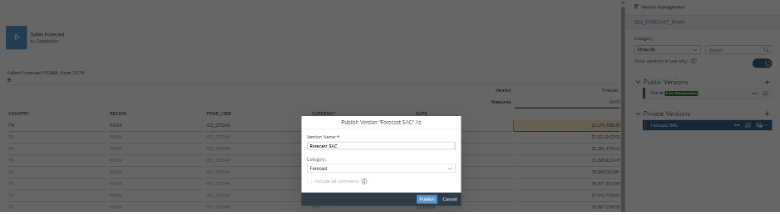 | SAC Excel Add-in does not allow publishing of data by version as in SAC Story |