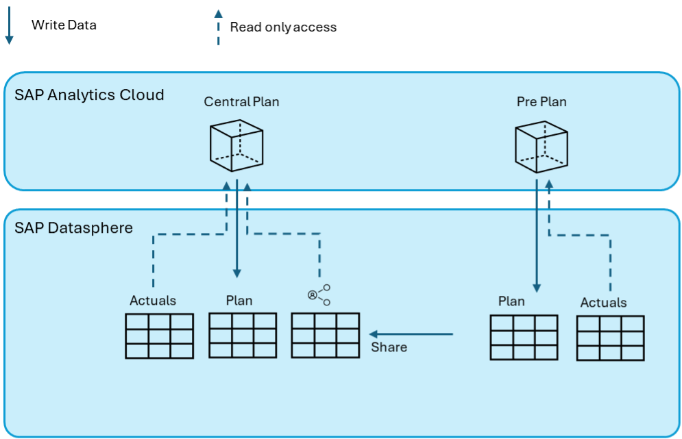 Bei Seamless Planning liegen die Daten in der Datasphere, es wird aber alles von der SAC verwaltet.