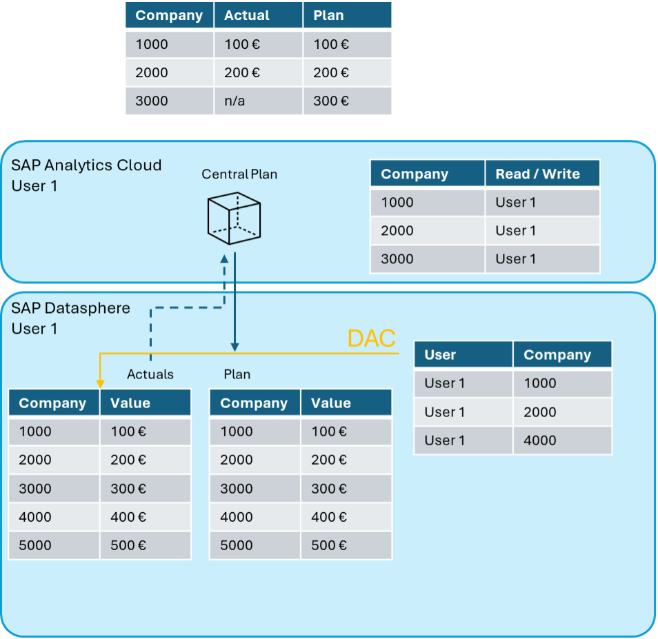 Abbildung 6: DAC – Berechtigung in der Datasphere und Einschränkung in der SAC